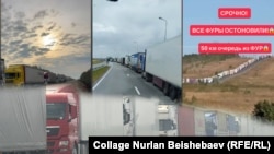 Казак-орус чек арасында узун кезек жаралганын байма-бай оор жүк ташуучу автоунаалардын айдоочулары видео тартып, социалдык тармактардагы баракчаларына жүктөп келишет. Андай видеолорду соңку бир жумадан бери тынбай көрүүгө болот.