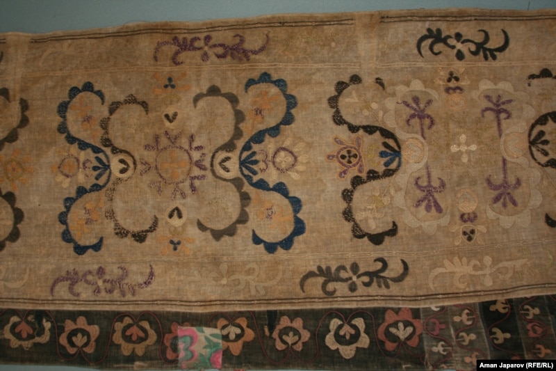 “Курманжан датка – доор инсаны” деген аталыштагы көргөзмөдөгү экспонаттардан өзгөчө көңүлгө урунганы 1886-жылы Курманжан датка саймасын сайып, небересине сеп кылып берген туш кийиздин бөлүгү болду. Аны кезинде Датканын урпактары тарых музейине алып келип бериптир.